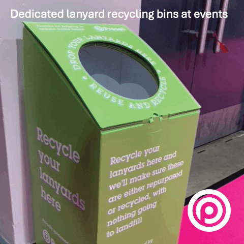 We have designed a template for card recycling bins for use at larger shows and events. Event organisers can personalise the bins and use them to collect used lanyards as visitors exit the event.
