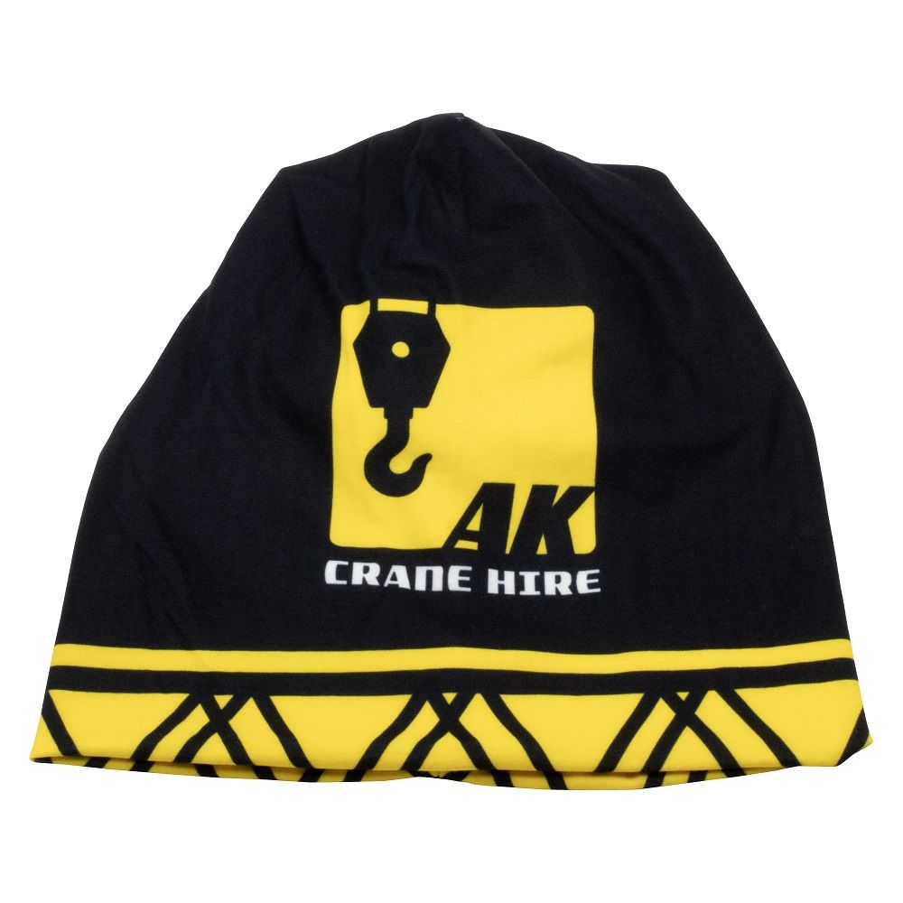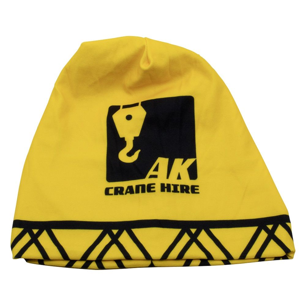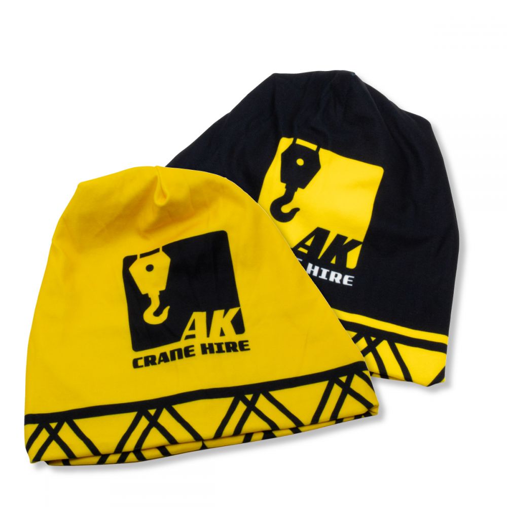 A polyester beanie with a full colour print with reversible design.