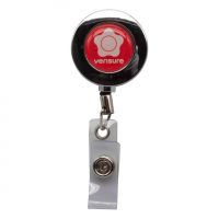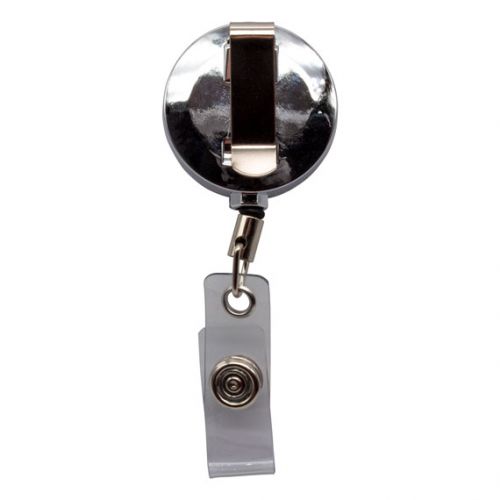 Fitted with a retractable reel featuring a clear vinyl strap and press stud clip. A metal belt-clip on the reverse allows the pull reel to be easily attached to a belt or pocket.