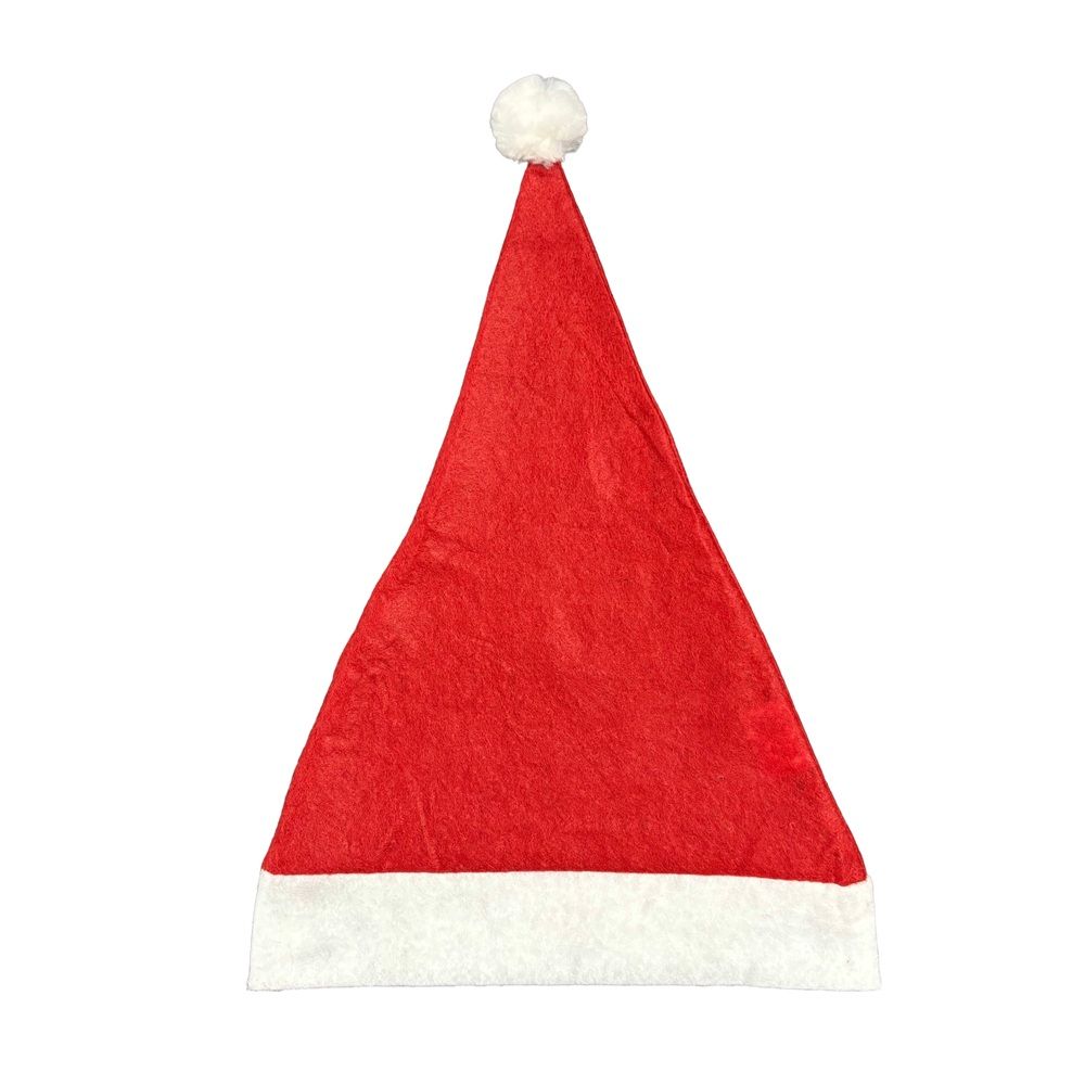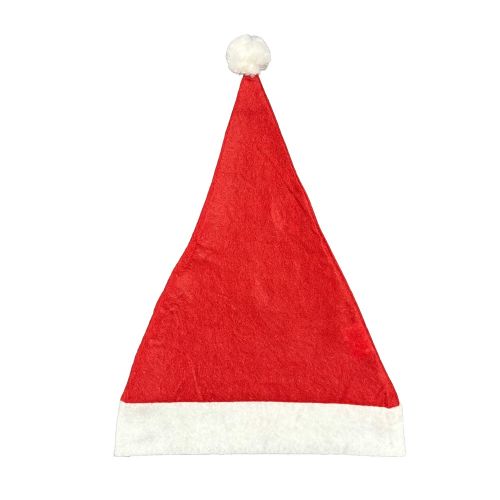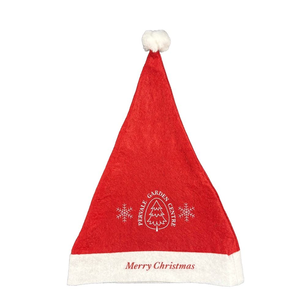 A polyester red and white santa hat available plain stock, screen printed or with a full colour transfer print.